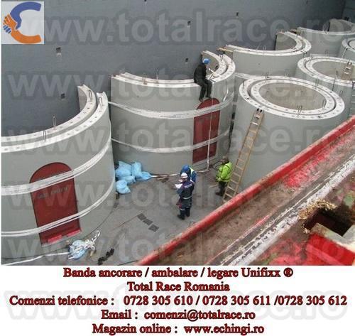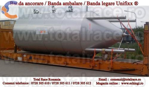 Total Race livreaza din stoc banda de ambalare/ancorare ce asigura transportul in siguranta a tuturor produselor/marfurilor (transport maritim,transport rutier,transport feroviar,transport agabaritic,transport special), legarea solarelor, tamplarie PVC, agricultura, industria lemnului, slacklining. Este o banda ideala pentru ambalarea/ancorarea tevilor,otelului inoxidabil. Banda din poliester are capacitati de la 2250 daN pana la 7500 daN,latimi de banda intre 25mm–50 mm, nu ruginesc,sunt flexibile,nu deterioreaza incarcatura.