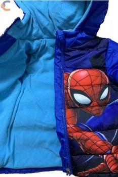 Geaca de iarna Spiderman pentru copii este prevazuta cu gluga, inchidere cu fermoar si 2 buzunare.
