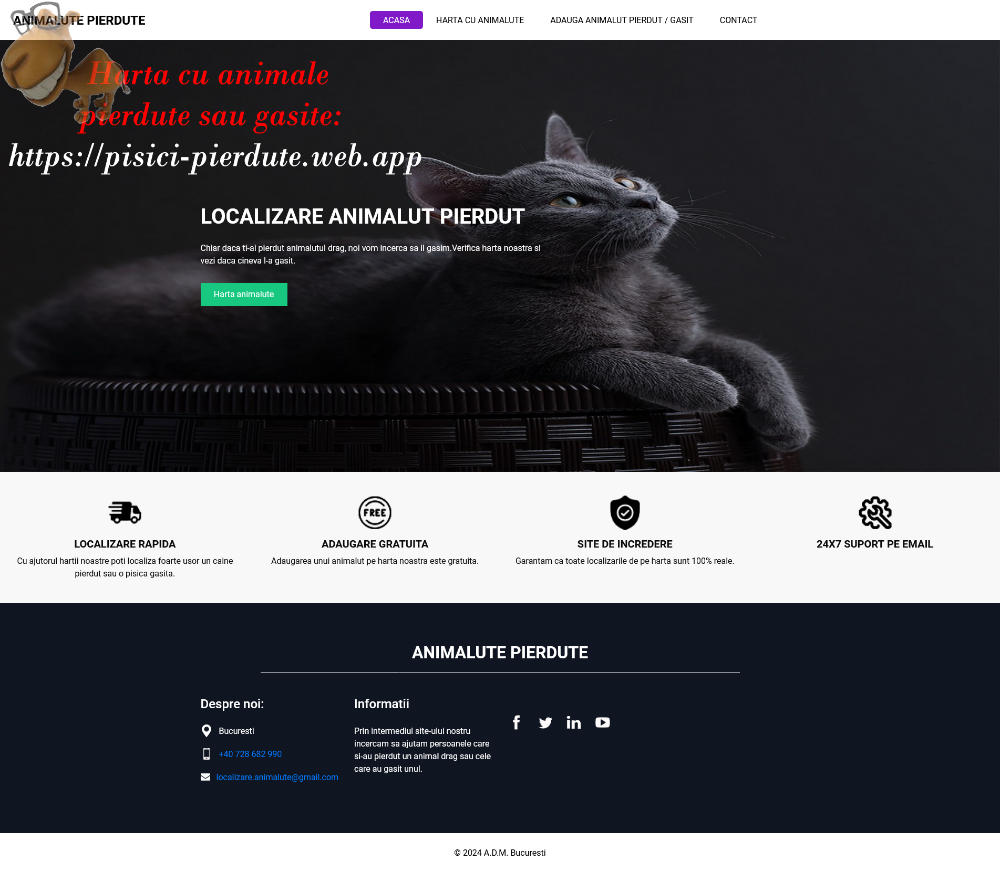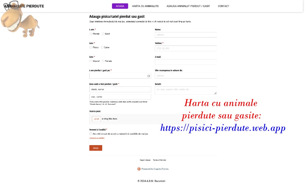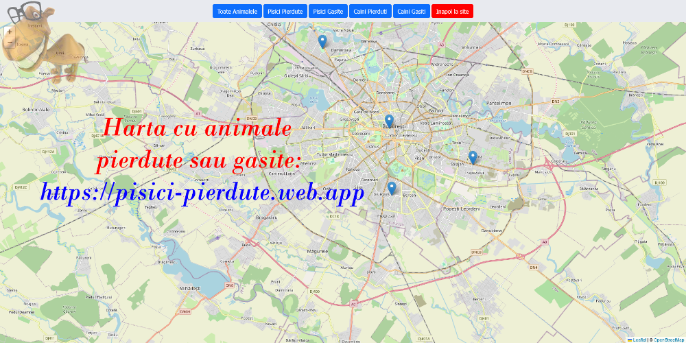 Poti adauga pisica sau cainele gasit sau pierdut pe harta noastra unde poate fi localizat non-stop: