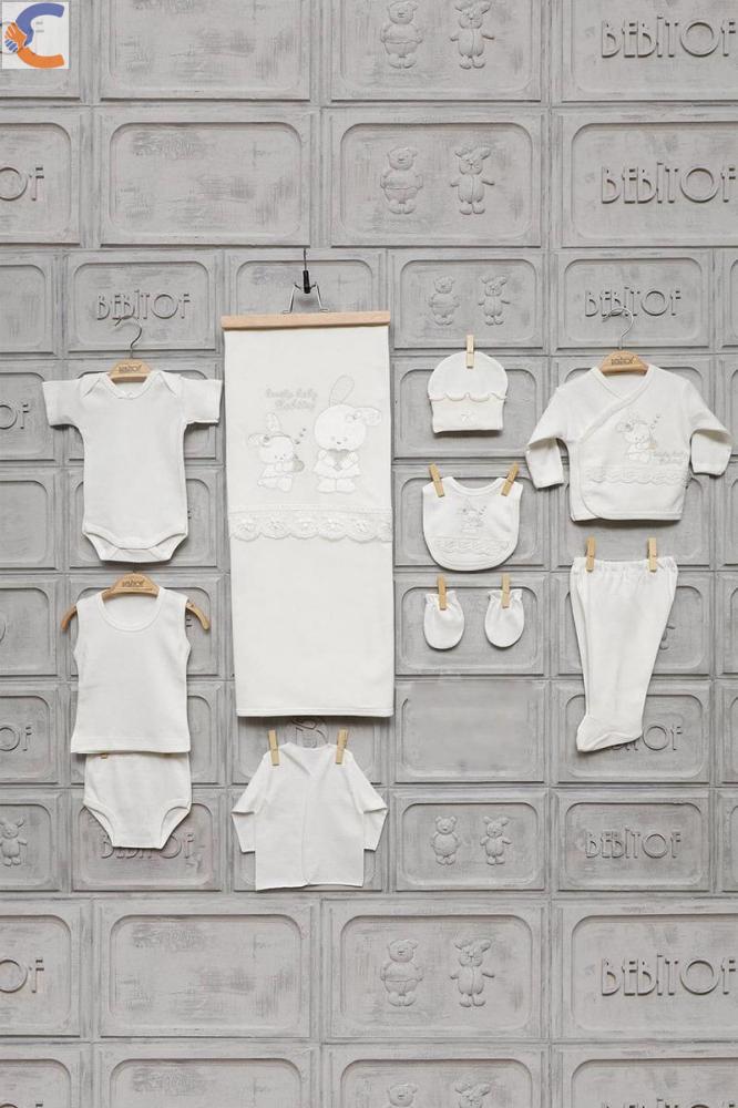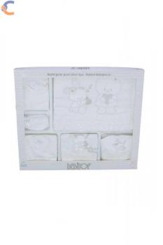 Cadoul ideal pentru toata familia cu prilejul unui eveniment extrem de important in viata bebelusului. Este format din scutecel cu broderie 85/85, bluzita cu broderie, pantalonas cu botosei, camasuta de corp, caciulita, body maneca scurta, manusi, maiout, chilotel si bavetica.
