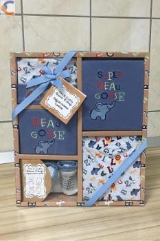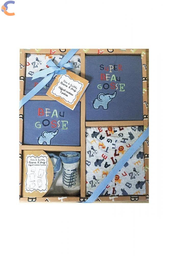 Race Kids livreaza din stoc set cadou pentru bebelusi cu un imprimeu vesel format din 5 piese. Un cadou practic pentru cei mici alcatuit din caciula, bavetica, bluzita, pantalonasi si sosete.
