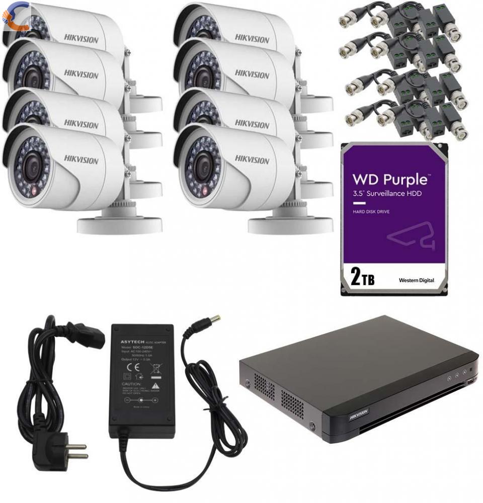 Sistem complet de supraveghere cu montaj format din 8 camere HikVision de 2Mp,