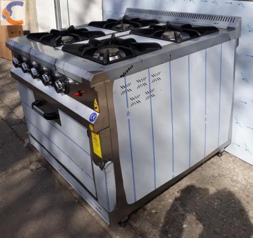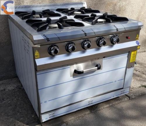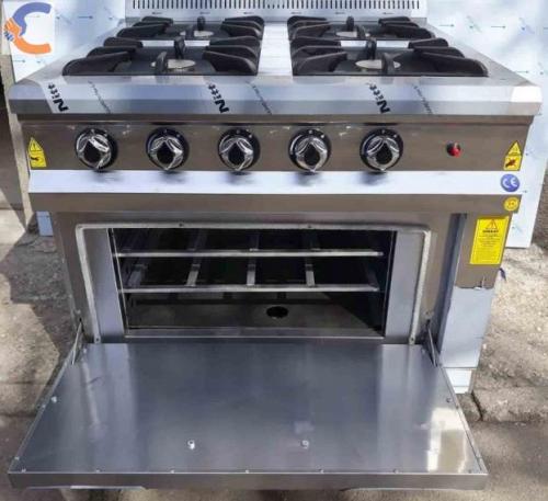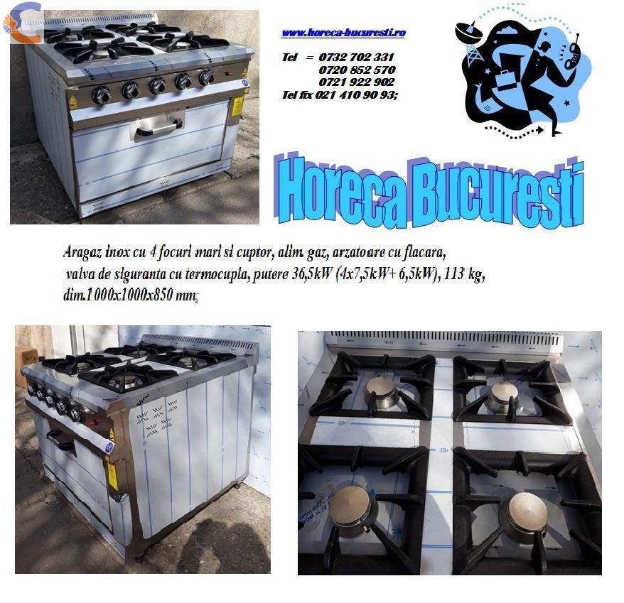Aragaz inox cu 4 focuri mari si cuptor, alim. gaz, arzatoare cu flacara,