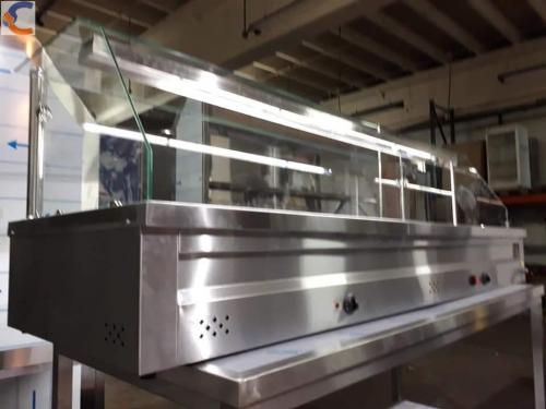 Vitrina calda inox de banc, 4 GN1/1, putere 2,5 KW, lumina interna, 1 termostat mecanic, alim 220V/50 Hz, dim.1500x700x750 mm;