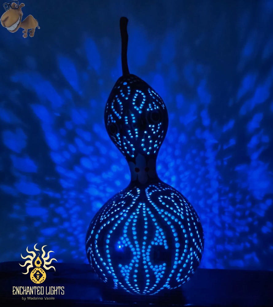 Lămpile emană o lumină relaxantă, perfectă pentru orice spațiu. Fiecare piesă este unică, unicitate care subliniaza frumusețea naturală a tărtăcuțelor.