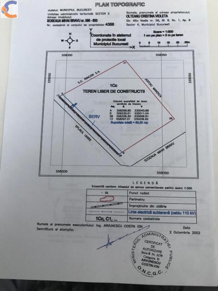 Teren central București pe sos Mihai Bravu 596-600 sector 3, în suprafață de 1498mp, regim de înălțime 2 etaje, construibil pe 80% din suprafața, preț 1000 €/mp.