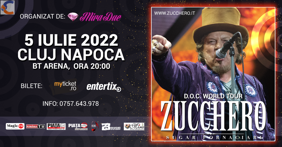 Concert Zucchero – Cluj Napoca - 05 Iulie 2022 Sala Polivalenta BTArena - Cu un palmares cum nu se pot lăuda mulţi artişti, Zucchero a reuşit de-a lungul carierei de peste patru decenii să cucerească lumea întreagă şi să vândă peste 50 de milioane de albume. Va asteptam si pe voi la acest concert de care v-ar parea rau sa il ratati. Biletele in vanzare AICI: https://www.myticket.ro/evenimente/7491/zucchero-5-iulie-2022-bt-arena-sala-polivalenta-cluj-napoca.html info: 0757643978 nu sms
