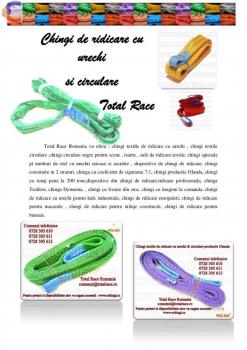 Total Race livreaza din stoc chingi textile de ridicare cu lungimi mici , chingi de ridicare, chingi textile din poliester, chingi cu urechi,chingi plate, chingi rotunde, chingi circulare, chingi productie Olanda,sufe textile de ridicare, sufe macara, sufe poliester, chingi ancorare, chingi ancoraj, chingi ambalare textile, banda chinga benzi ambalare, chingi auto, chingi tractare, chingi auto cu prindere in 3 puncte, chingi roata, chingi auto, chingi auto ancorare camioane, accesorii chingi textile dispozitive de ridicare din chingi, echipamente ridicare. Chingile textile de ridicare cu urechi si si chingile circulare se livreaza insotite de declaratie de conformitate , tabel de sarcini si instructiuni de utilizare.
