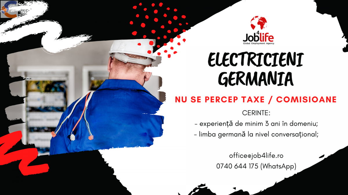 Job4Life recruteaza pentru partenerii sai din Germaniei ELECTRICIENI, vorbitori de limba germana.
