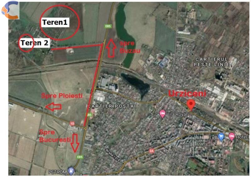 Terenul 2 situat in Urziceni, categoria curti constructii agroindustriale in suprafata de 20478 mp. Terenul (o fosta statie de epurare) este in mare parte betonat.