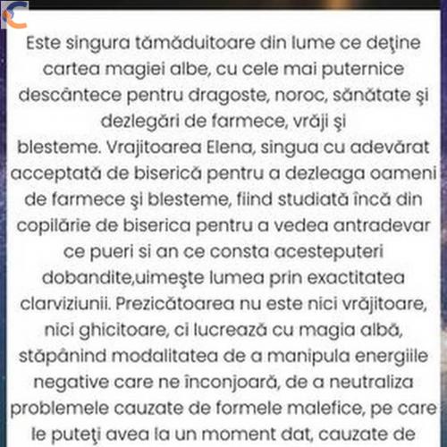 Sunt Elena Tămăduitoarea,vă recomand să apelaţi cu încredere pentru rezolvarea tuturor problemelor dumneavoastră. Împreunez iubit cu iubită,soţ cu soţie.