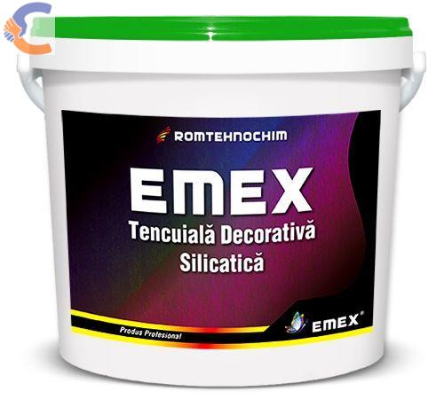 Tencuiala Decorativa Silicatica EMEX este un produs profesional pe baza de silicat de potasiu, pigmenti si aditivi, cu adaos de cuart si granule de marmura, destinat finisarii decorative superioare a tencuielilor, cu aspect final striat, mat. Este folosit cu precadere la restaurari de cladiri si monumente. Are o aderenta exceptionala, rezistenta foarte mare si nu permite murdariei sa adere la suport.