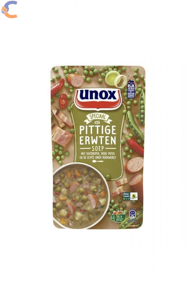 Total Blue comercializeaza din stoc supa de mazare cu crenvusti Unox, productie Olanda.