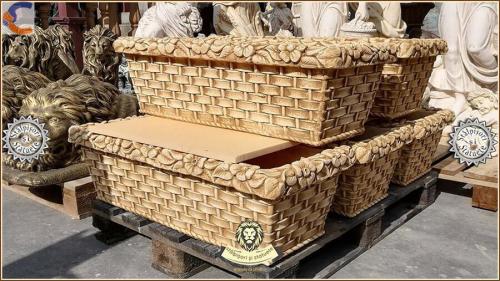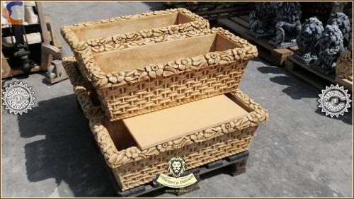 Jardinieră ornament flori, galben patinat, model J14.