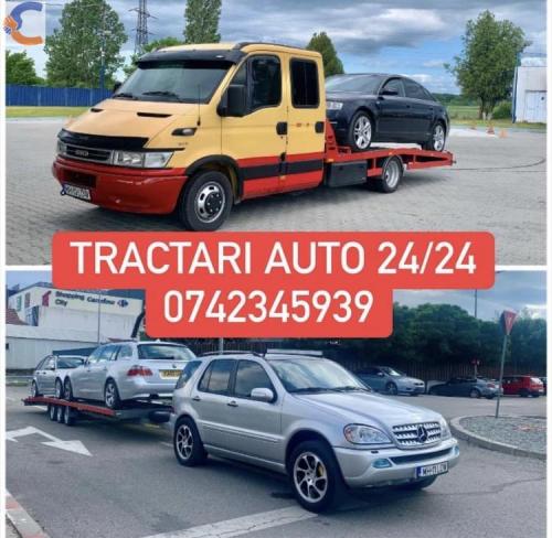 Efectuam Tractări Auto pe platforma 24/24 Timp minim de intervenție ! Servicii Profesionale Personal Calificat , Șoferi profesionisti Preluam Auto avariate , roti rupte / blocate Autoutilitare , Microbuze , Camionete Locuri pentru pasageri Aer Condiționat Prețuri Accesibile !