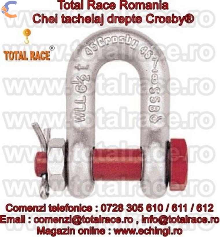 Total Race Romania are in stoc: shackles tip lira marca Crosby, cheie tachelaj dreapta cu bolt filetat Crosby®, gambeti tip lira ce au capacitati cuprinse intre 0.5 Tone si 55 Tone . Cheile de tachelaj peste capacitate WLL= 25 Tone sunt echipate RFID. Cheile de tachelaj Crosby® se livreaza cu certificate de calitate CE de la producator.