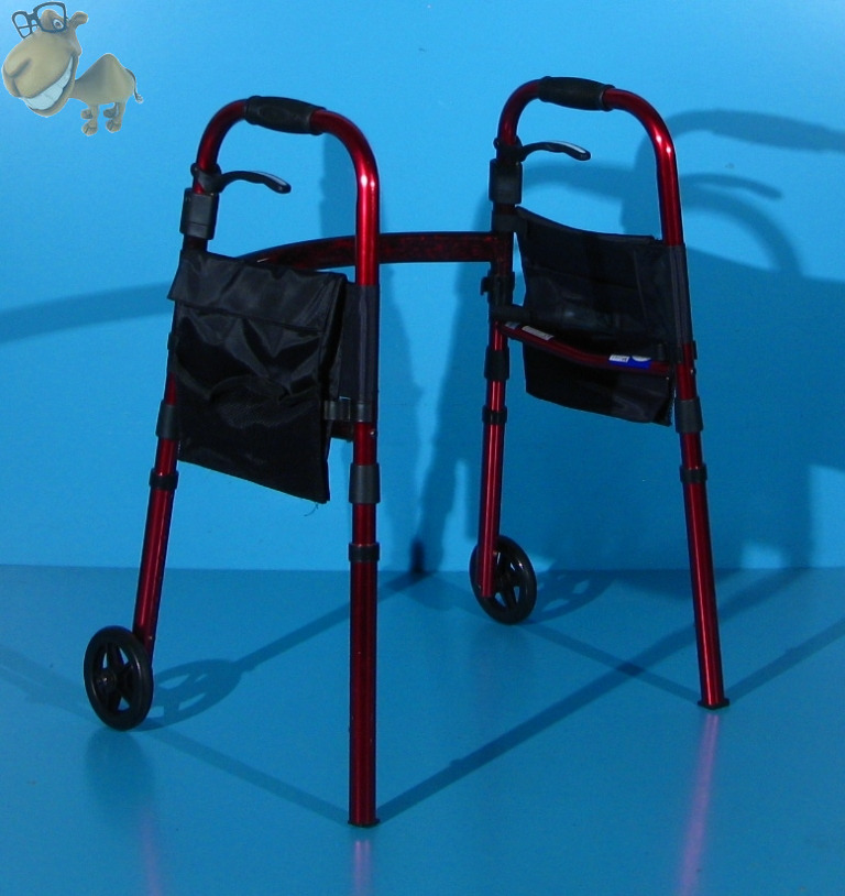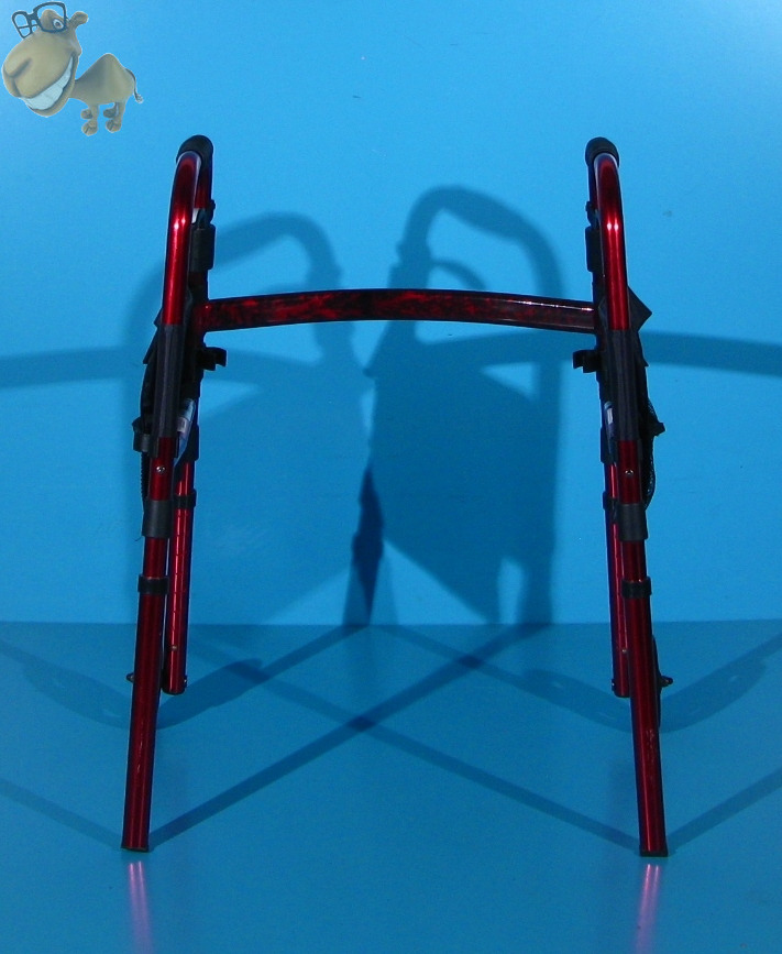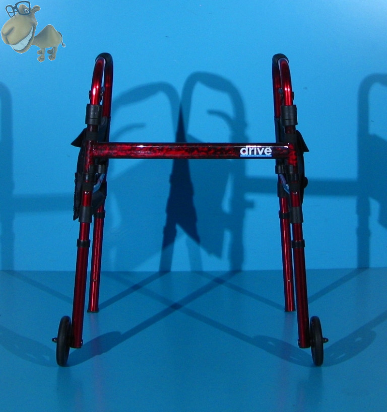 Doua roti frontale faciliteaza deplasarea mersului, iar doua picioare cu varfuri de cauciuc care nu marchează podeaua, asigura stabilitatea mersului.