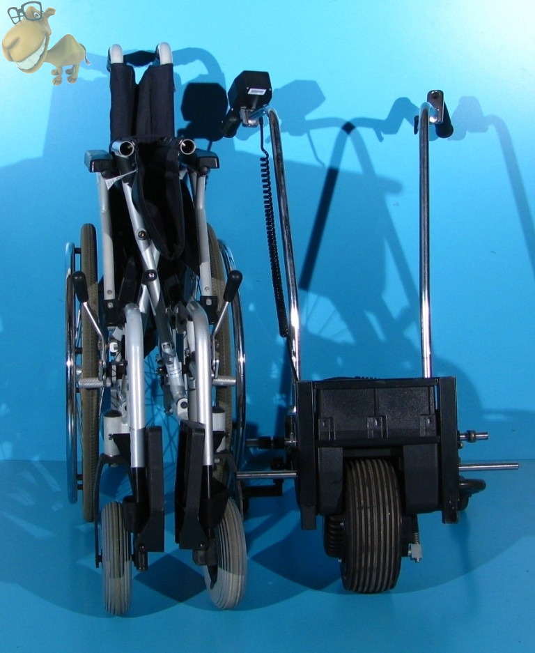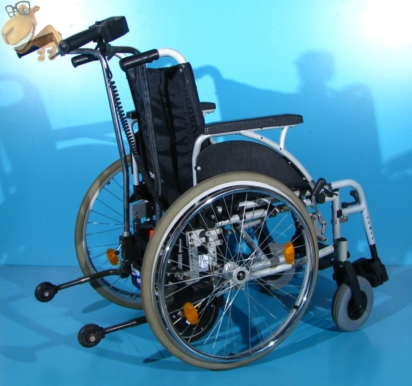Acest dispozitiv pentru scaunul cu rotile, vine cu un nou concept pentru impingere si franare, facand dintr-o deplasare greoaie si plina de efort, o plimbare relaxanta si placuta atat pentru insotitor cat si pentru utilizator.