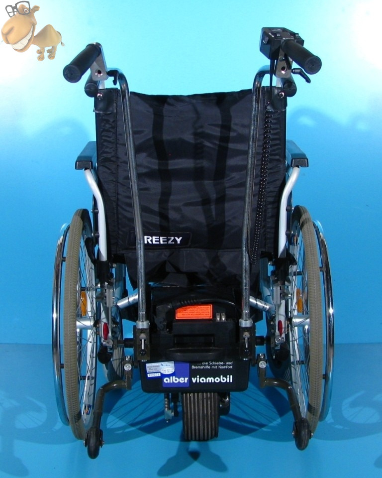 Breezy este denumirea scaunului cu rotile pe care este instalat acest dispozitiv.