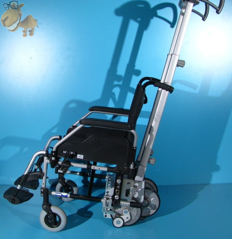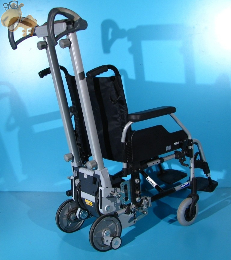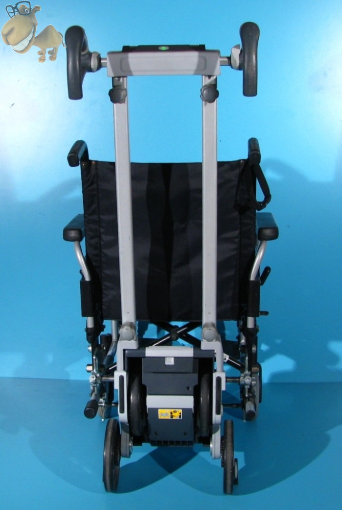 Deplasarea in sus si jos se face cu ajutorul unui motor electric. In timpul deplasarii pe scari, rotile mari ale scaunului cu rotile trebuie detasate.