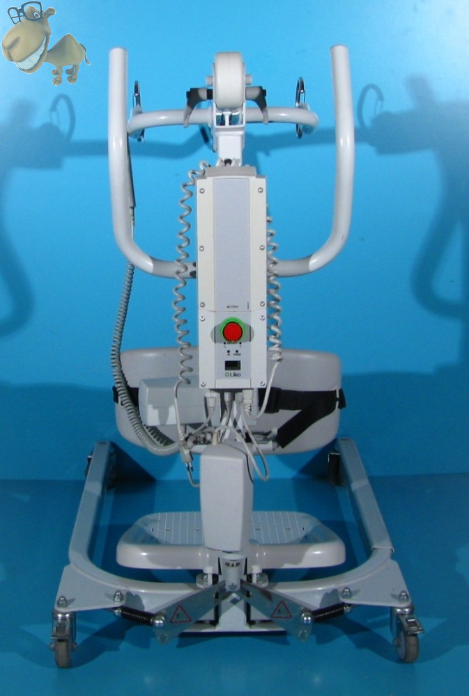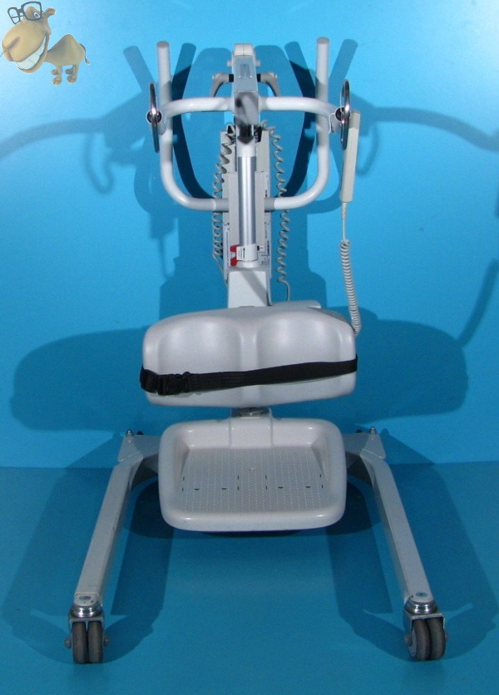 Picioarele se deschid si se strang electric doar din telecomanda, permitand acestui lift de ridicare si transportare sa se pozitioneze foarte aproape de pacient.