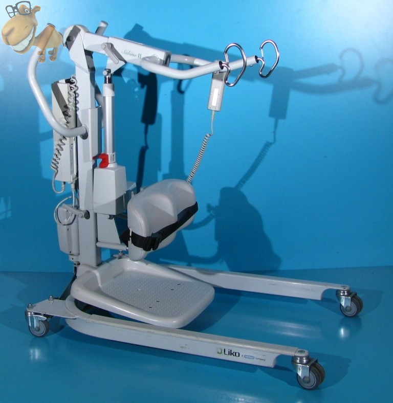 Acest elevator pentru pacienti trebuie operat de catre un asistent pentru ridicare, coborare si deplasare.