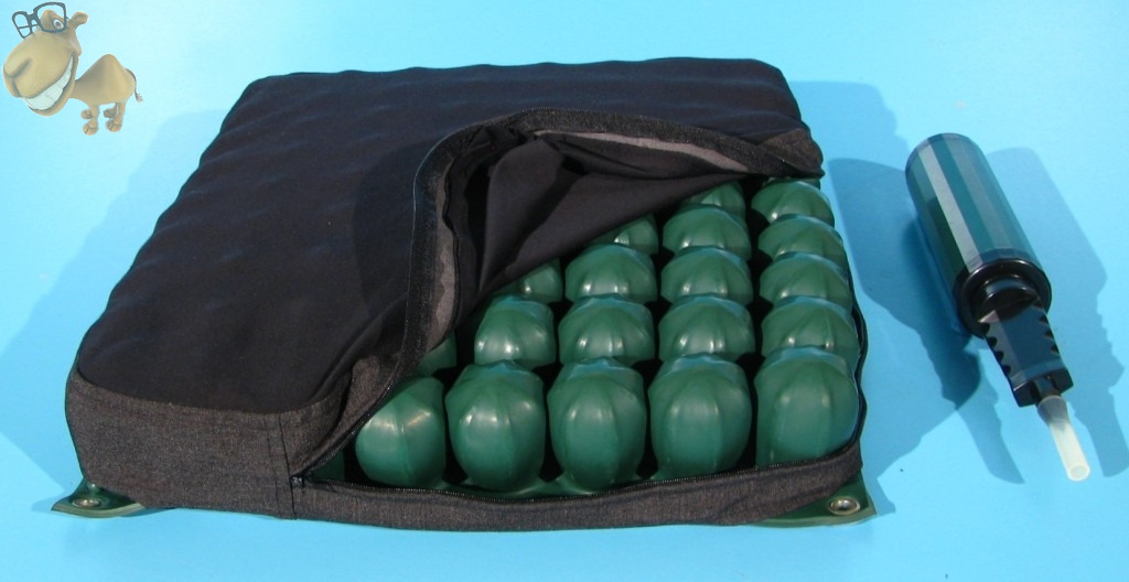 Produs ortopedic prevazut cu celule pe aer care optimizeaza pozitia sezutului, permite aerului sa circule pe dedesubtul pacientului, prevenind astfel aparitia escarelor.