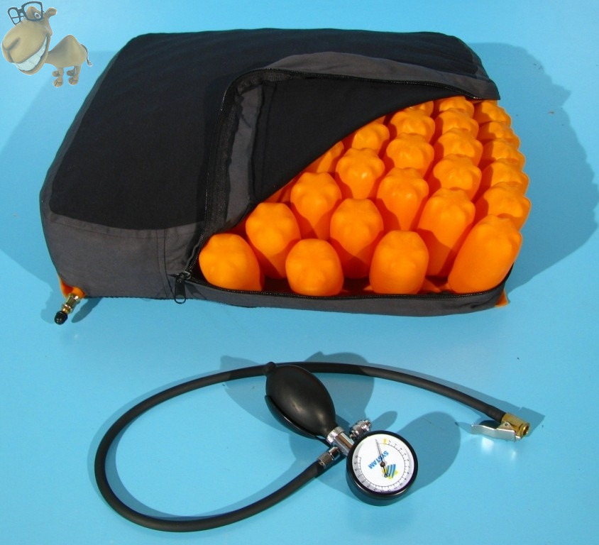 Produs ortopedic prevazut cu celule pe aer care optimizeaza pozitia sezutului, permite aerului sa circule pe dedesubtul pacientului, prevenind astfel aparitia escarelor.