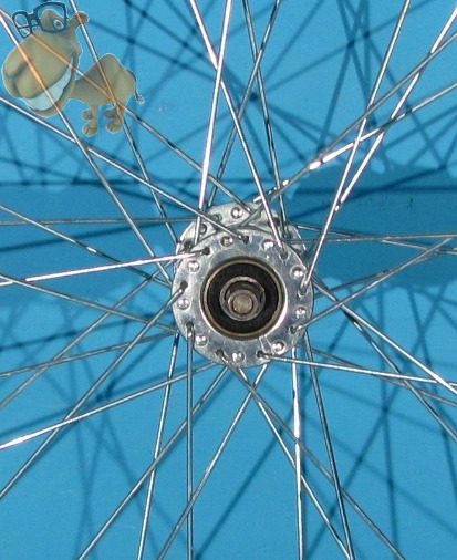 Roata dotata cu butuc simplu(fara frana la insotitor), cu bolturi pentru butuc.