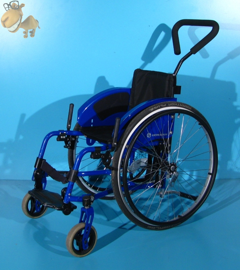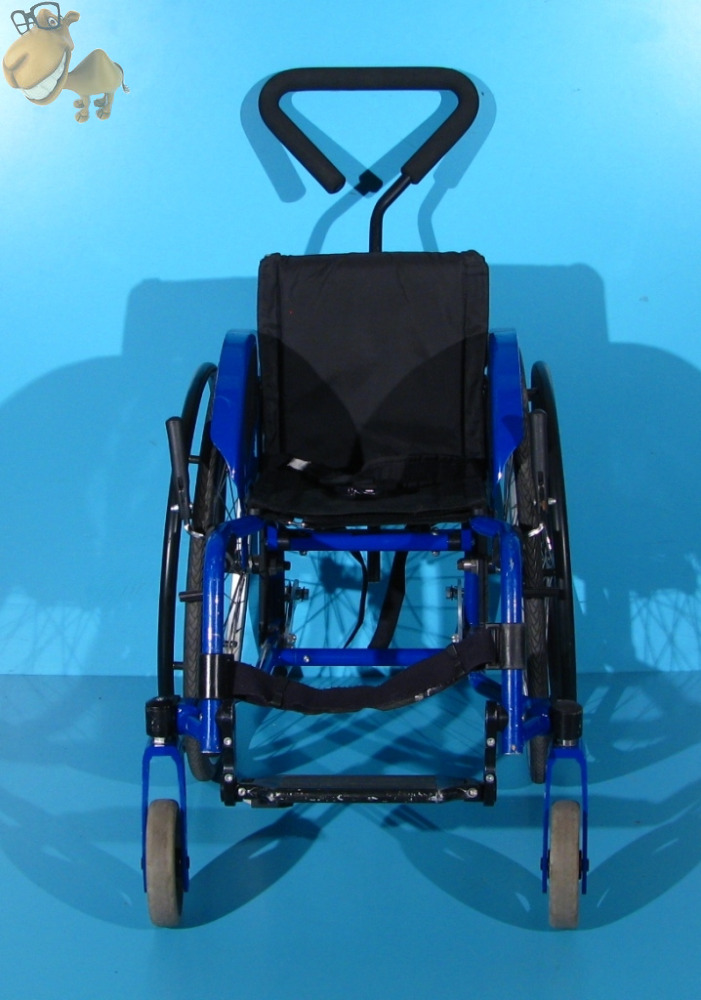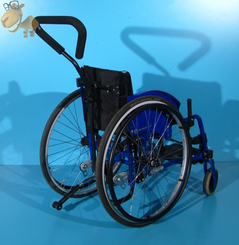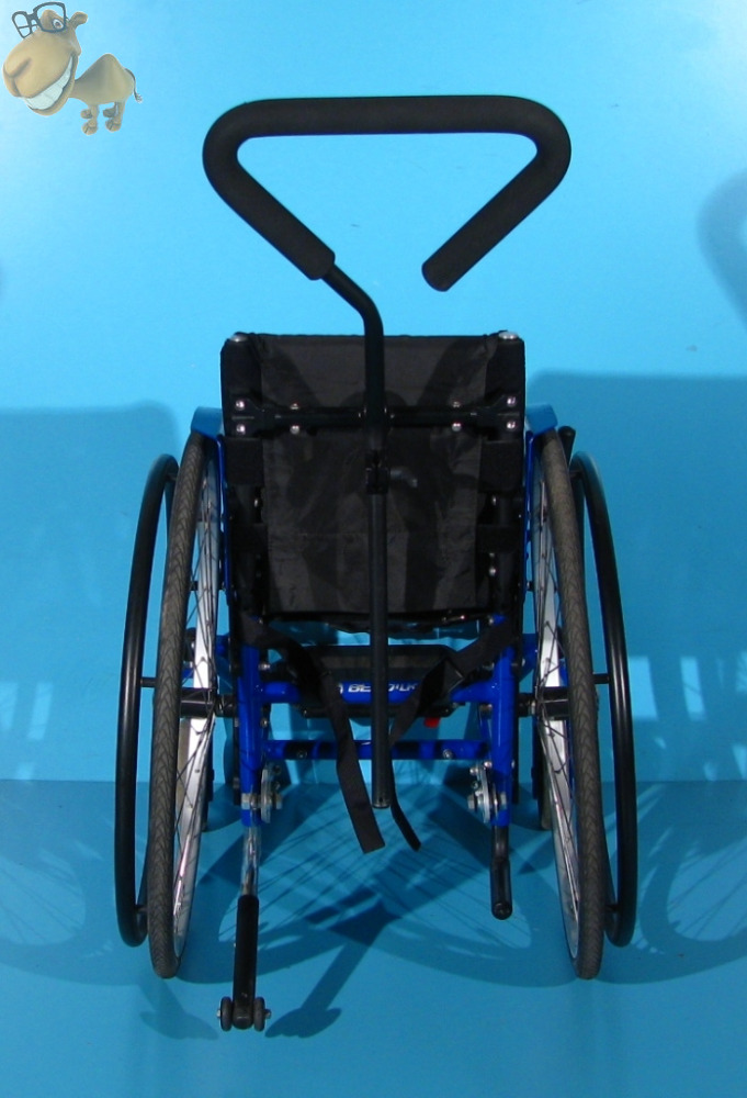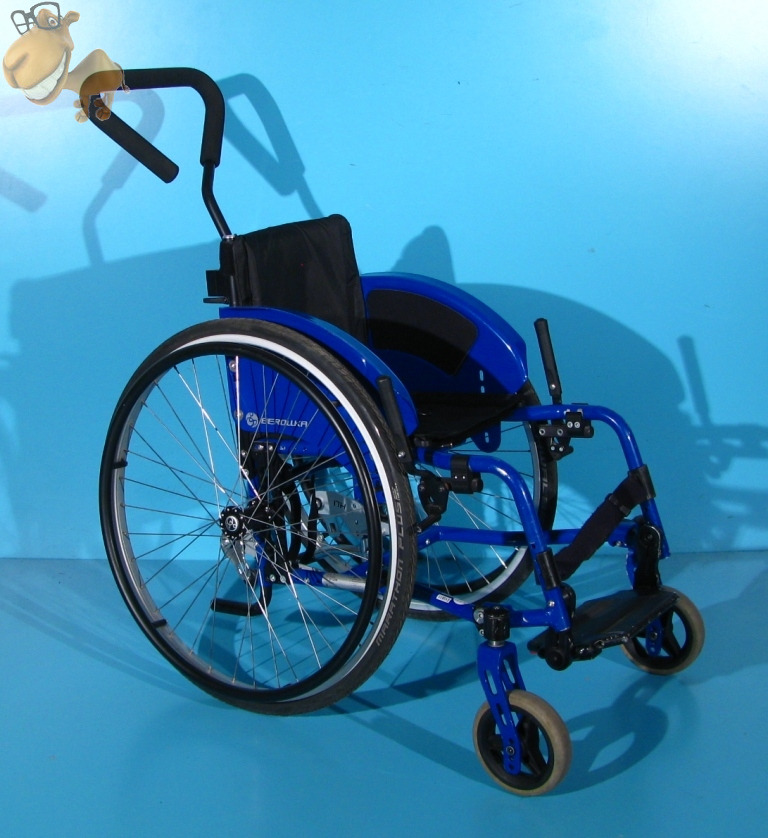 Scaunul rulant este dotat cu rotita antirasturnare pe partea stanga si cu centura de siguranta.