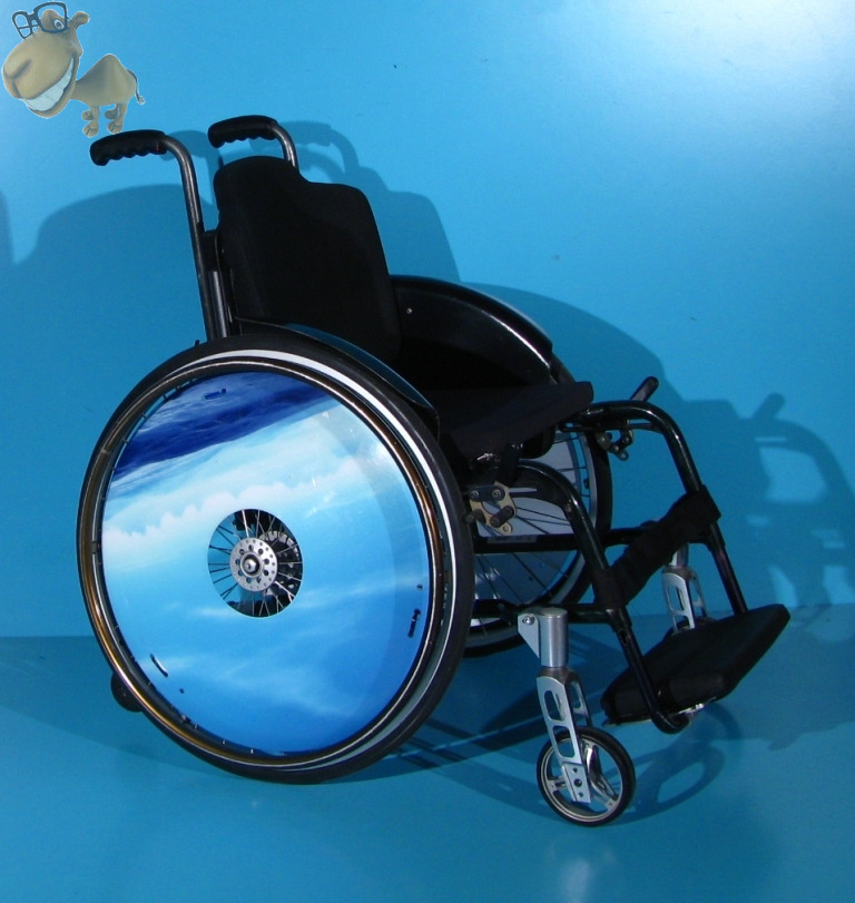 Scaunul rulant are schelet din aluminiu, vopsit epoxy.