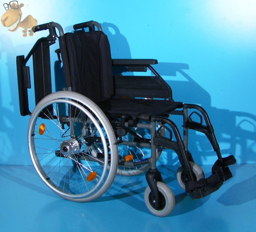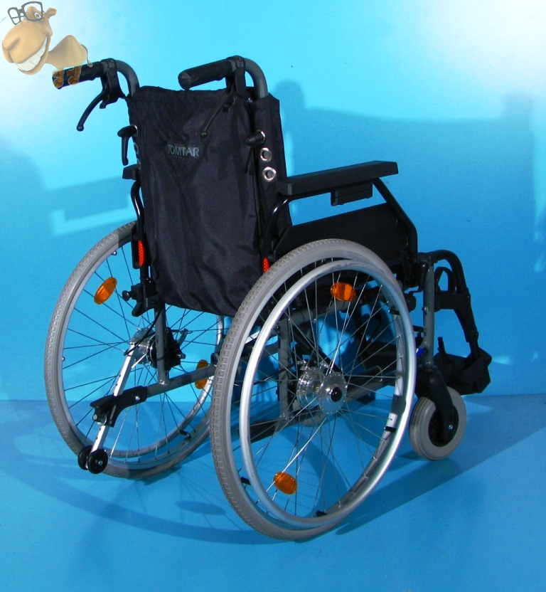 Carucior handicap second hand pliabil cu detasare rapida a rotilor, destinat deplasarii persoanelor cu handicap locomotor, si cu mobilitate scazuta.