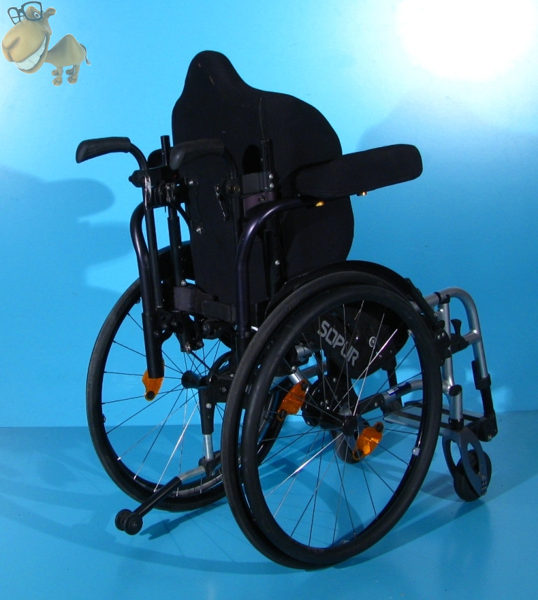 Carucior handicap second hand pliabil (dupa detasarea spatarului), cu detasare rapida a rotilor, destinat deplasarii persoanelor cu handicap locomotor, si cu mobilitate scazuta.