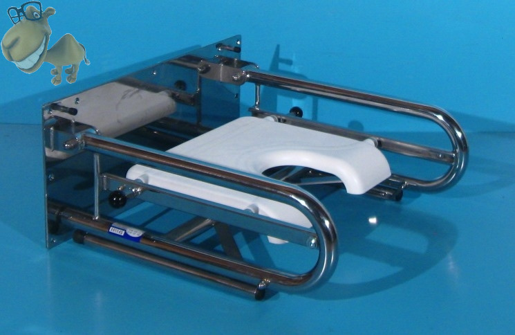 Scaun pentru dus rabatabil pe perete second hand destinat persoanelor cu mobilitate redusa, batrani, persoane cu handicap locomotor.
