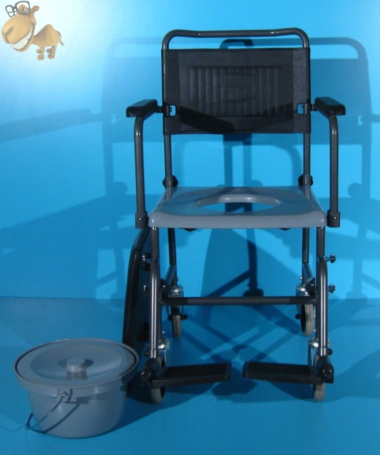 Acest carucior cu wc poate fi folosit in locuinta si ca scaun cu rotile.