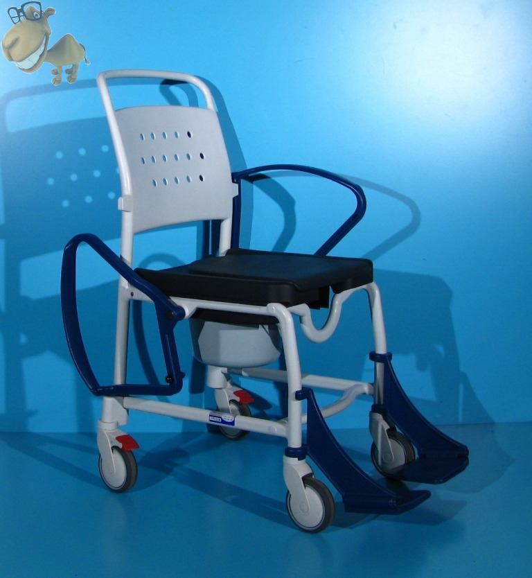 Acest carucior cu wc poate fi folosit in locuinta si ca scaun cu rotile.