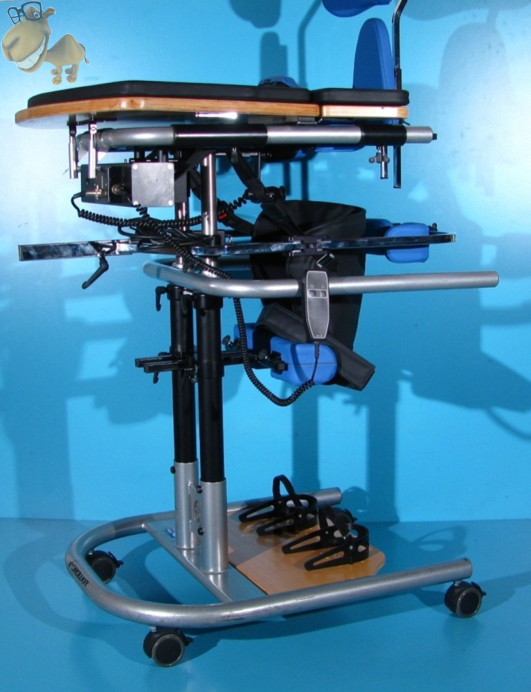 Cu ajutorul verticalizatorului, pacientul poate sta in picioare in siguranta, avand stabilitate si independenta.