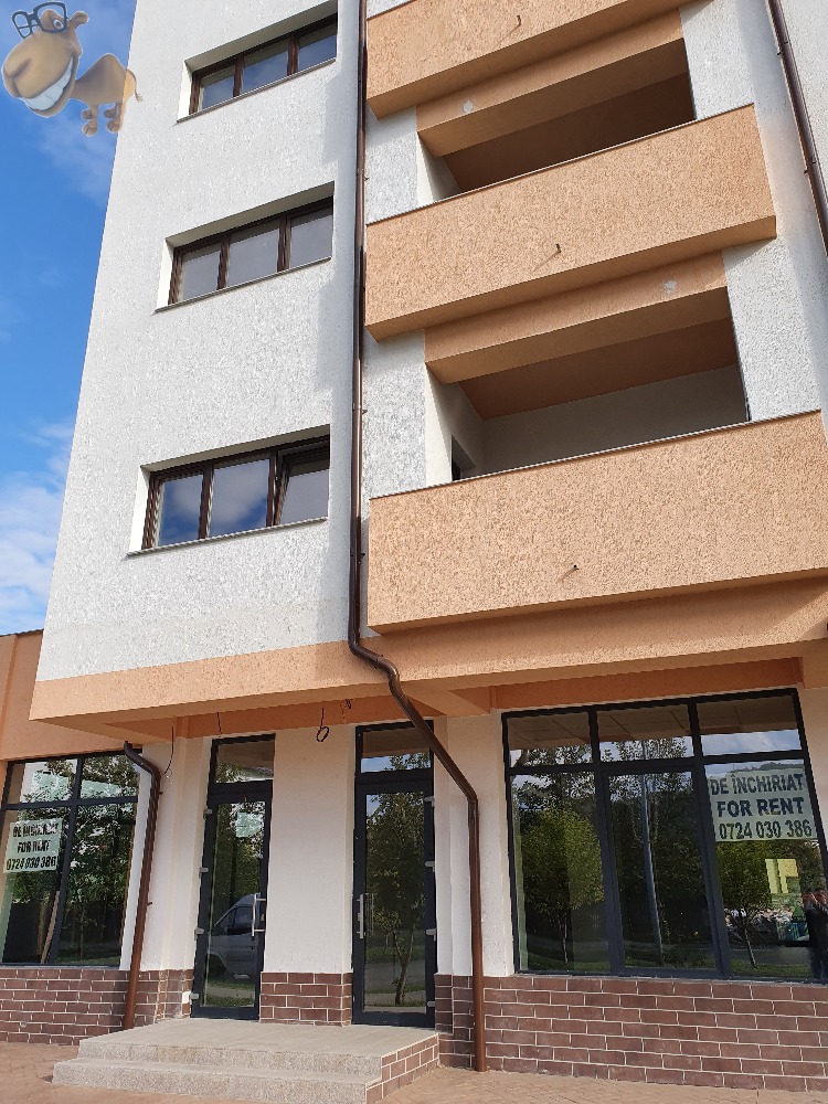 Va ofer spre inchiriere un imobil compus din : spatiu comercial, terasa, spatiu verde si loc de parcare. Spatiul comercial este situat la parterul unei cladiri de apartamente cu 6 etaje in mun. Ramnicu Valcea, bd. Dem Radulescu, bl. DC5, parter. Spatiul dispune de baie si contoare, iar constructia este realizata din beton armat si caramida si este izolata termic cu polistiren de grosime 10 cm.
